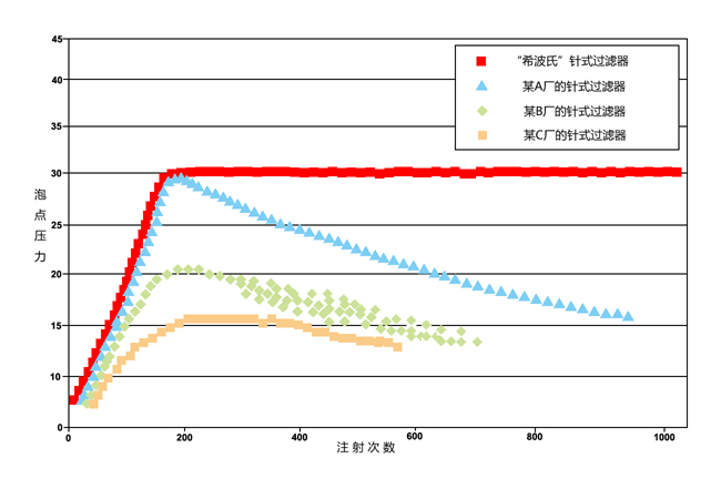 針式過(guò)濾器泡點(diǎn)壓力測試對比圖